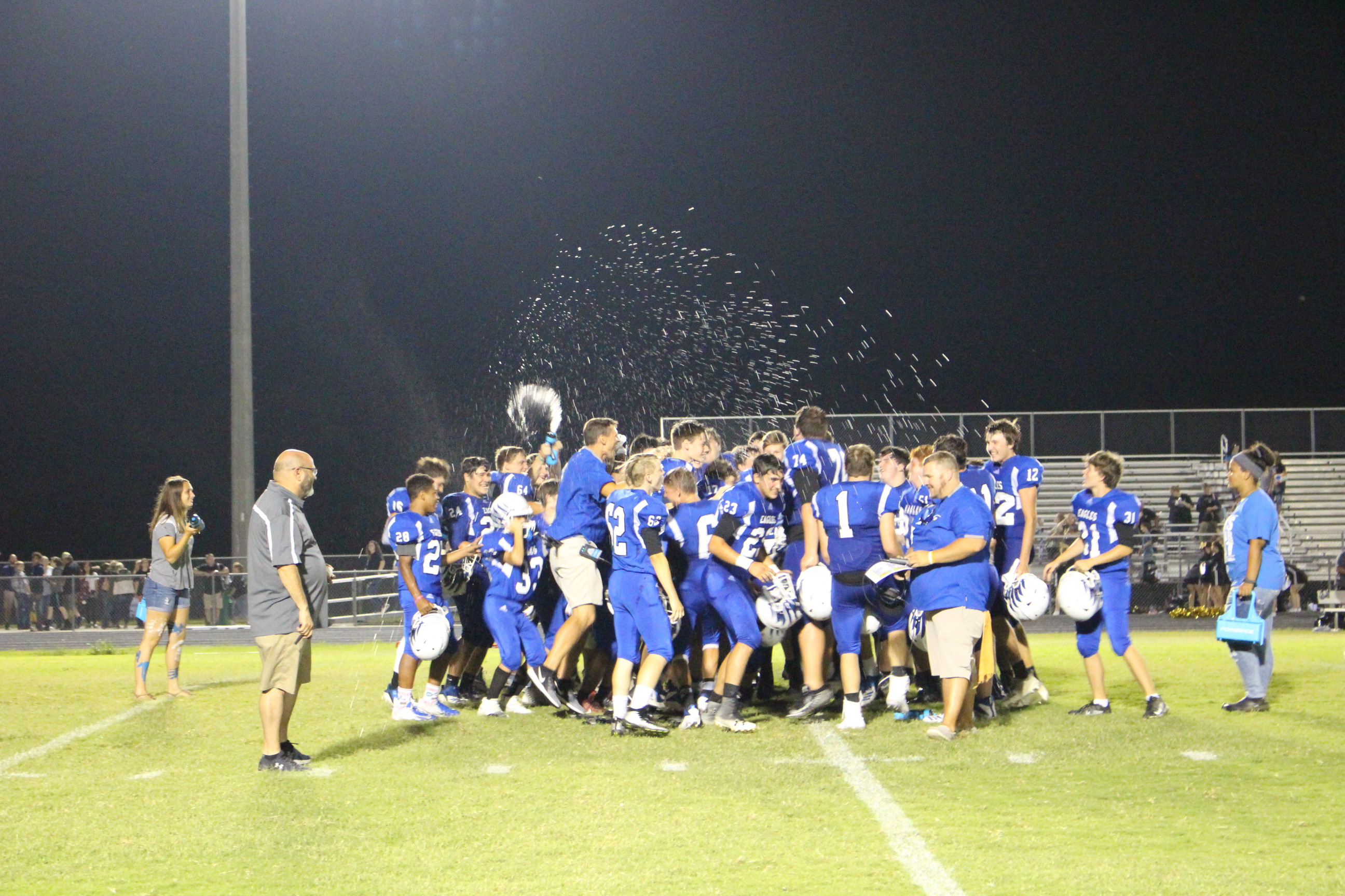 Tre F. doubles the school’s rushing touchdown record in a football game on August 23rd. The Eagles win their first game of the season against the Perry County Vikings with a score of 47-7. At halftime, the Eagles led 27-0. Tre, a senior, ended the game with a total of six rushing touchdowns, doubling the Eagles’ previous record of three. Codey T., also a senior, had a touchdown at the end of the 4th quarter. At the beginning of the 4th quarter, Perry County got their only touchdown.