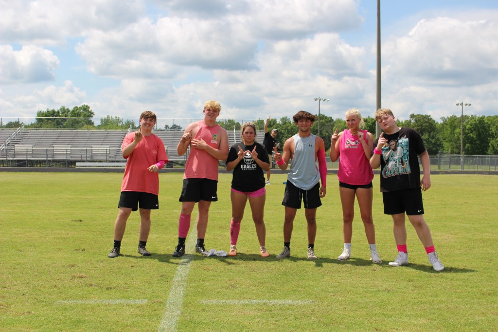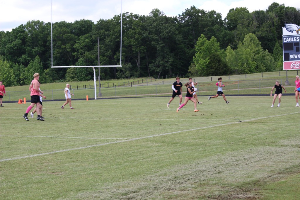 After lunch brought about the flag football tournament, where co-ed teams scrimmaged on the field. The aptly named “Pinks” (see photo) were the 2024 winners of the field.