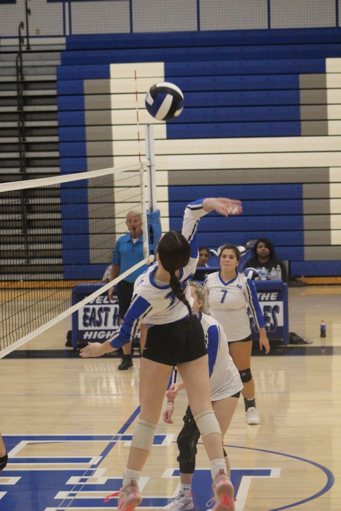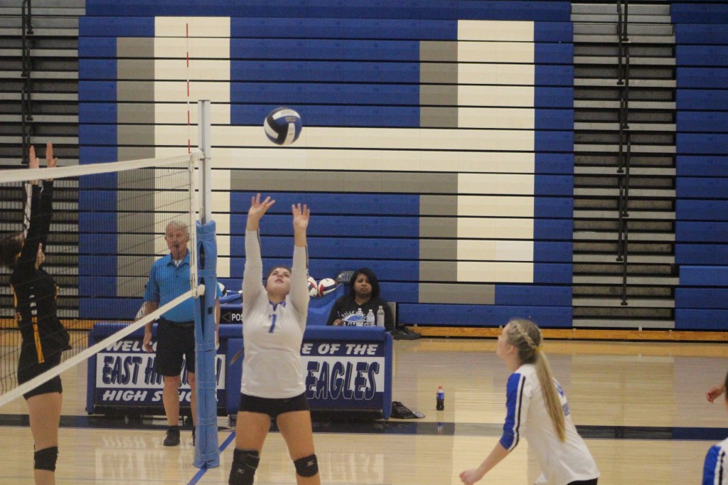 On August 19, the Lady Eagles Volleyball team won their first game of the season against Santa Fe. They were hoping to win in three sets but settled for winning in four. Spectators reported that the team worked well together and that their relationship seemed to go beyond the court, and it does. Many of the players are friends and actively talk in school and hangout off the court. They believe that their close relationships is the cause of the easy communication on the court and led to their win. The next home game is on August 25 against Hampshire Unit School. Go Lady Eagles!!!