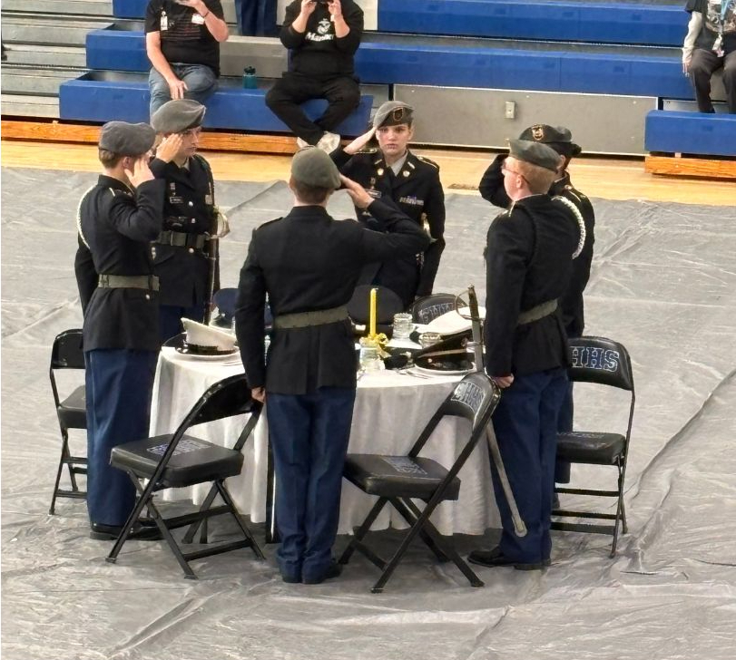 JROTC members moved seamlessly during their performance to honor the fallen service members which proved how hard they worked on the choreography. This was an emotional time for some of the veterans as they watched the band, choir, and JROTC honor the Veterans of America.